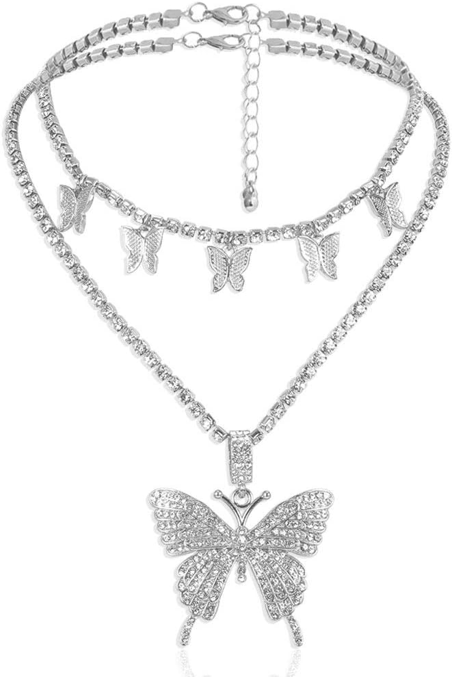 Statment Big Butterfly Pendant Necklace Rhinestone Choker Necklace for Women Jewelry