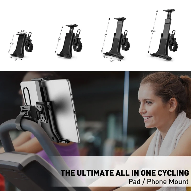 Indoor Gym Handlebar Tablet Holder Treadmill Bike Tablet Mobile Phone Bracket Adjustable Handle Mount Support 4-12 inch Devices