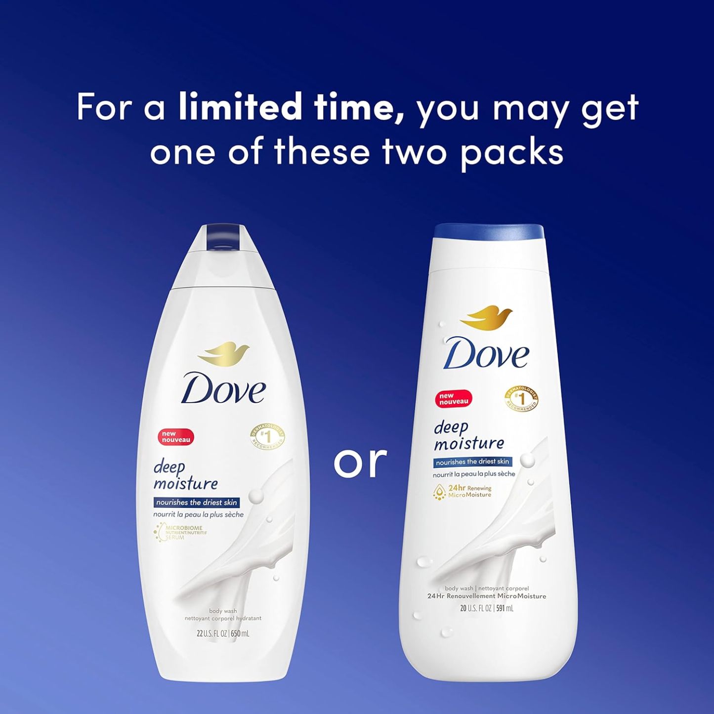 Dove Deep Moisture Body Wash, formulated with millions of MicroMoisture Droplets, actively regenerates skin's natural moisture, leaving it renewed and healthy-looking for 24 hours