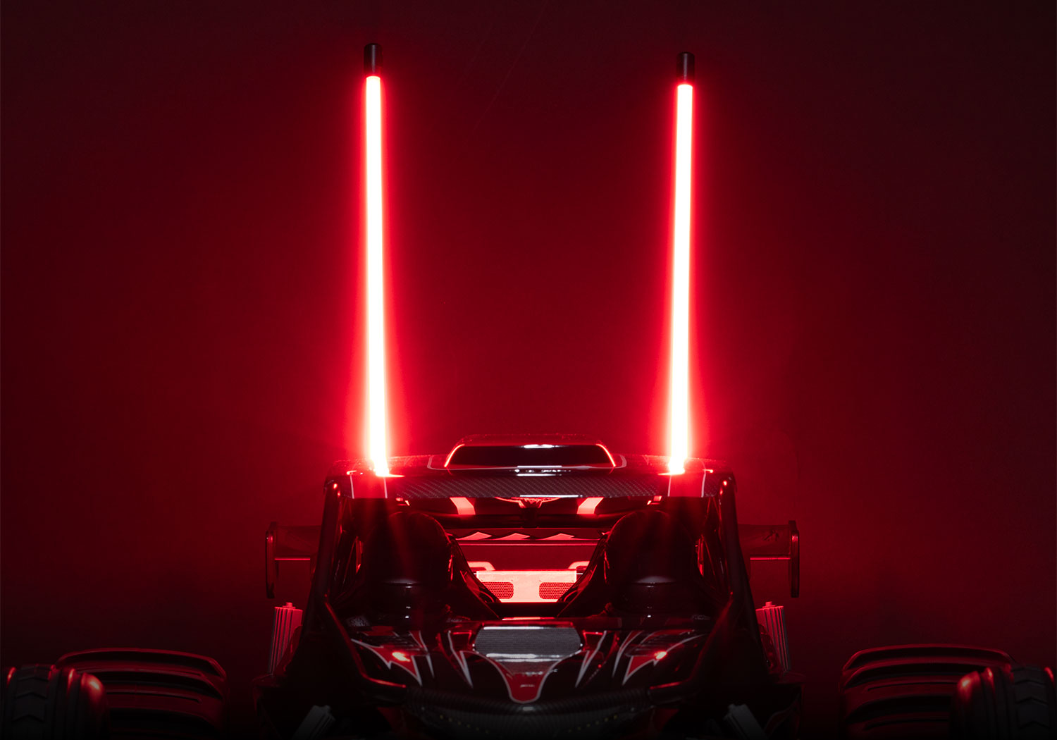 Colorful whip lights rise over 10 inches above the body to provide a clear and bright visibility marker when storming dunes at 55+ mph. The lights are color-matched to the body to give the car a dramatic look. New Flex-Tech™ spring-loaded mounts allow the whip lights to bend without breaking in case of rollovers.