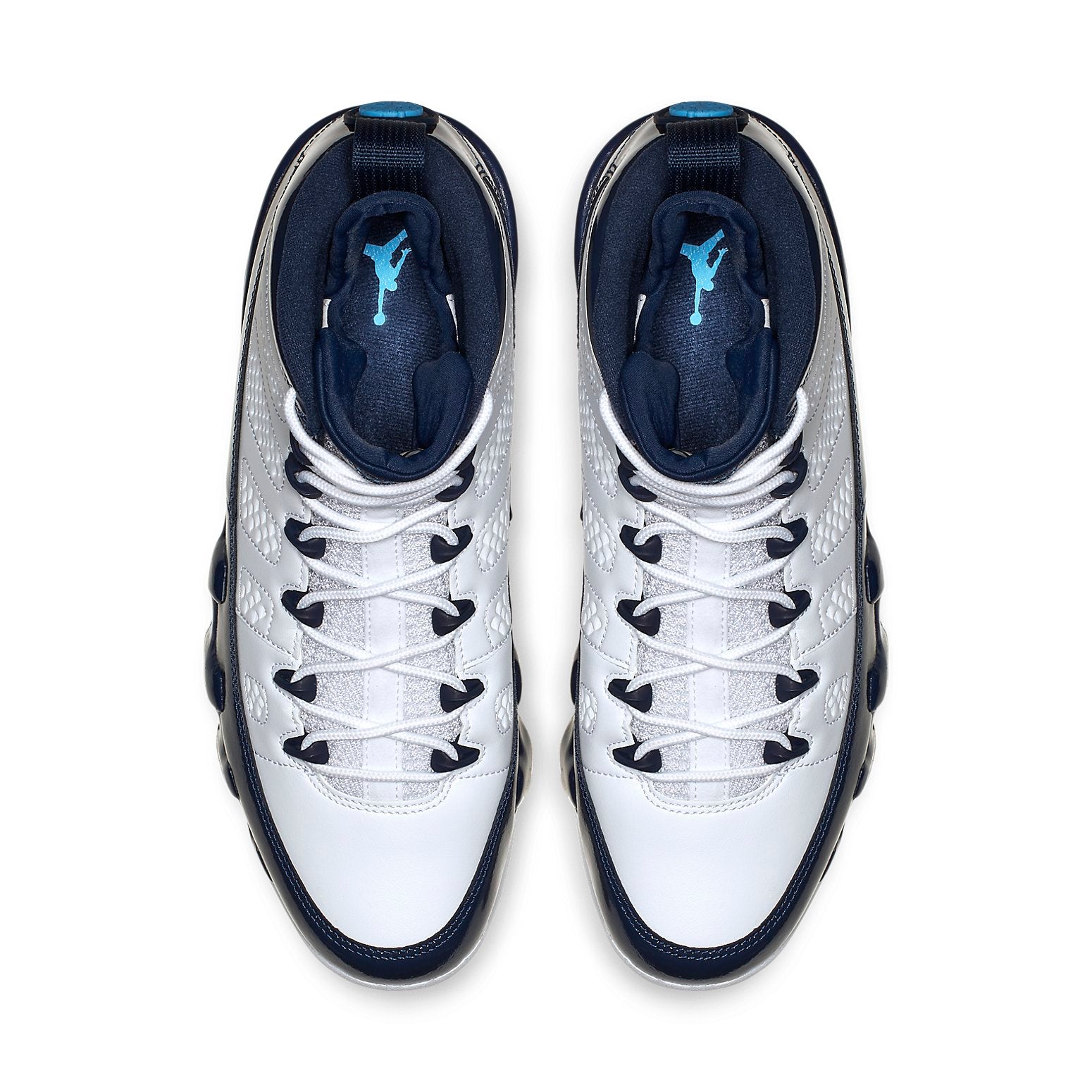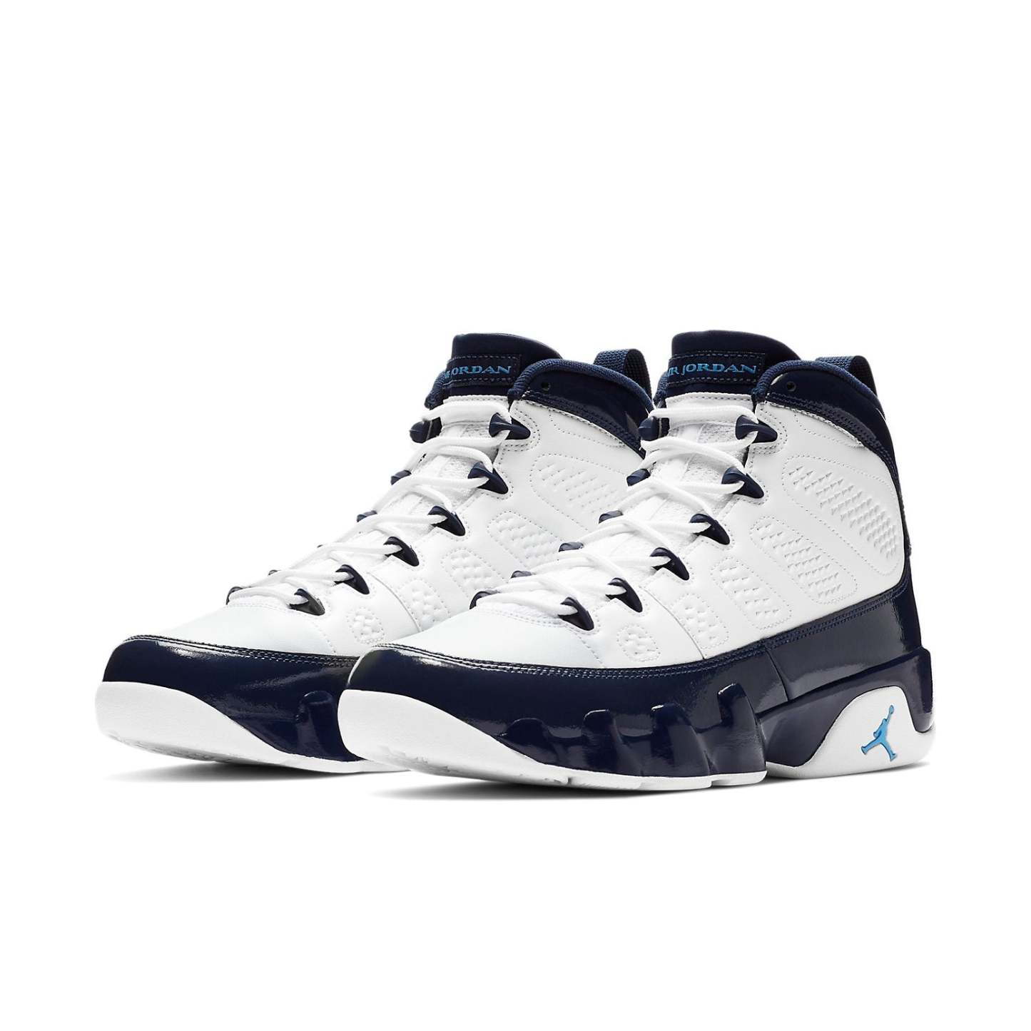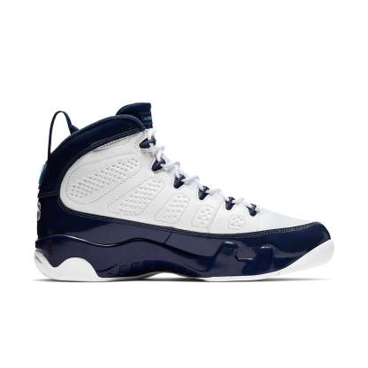 MJ’s Carolina Blue spirit comes to life on the Air jortktdan 9 Retro UNC. This men’s shoe delivers a white leather upper with patent navy overlays, complete with pops of University Blue on the Jumpman logos. The perfect addition to your sneaker rotation, this style is sure to turn heads no matter where you go.