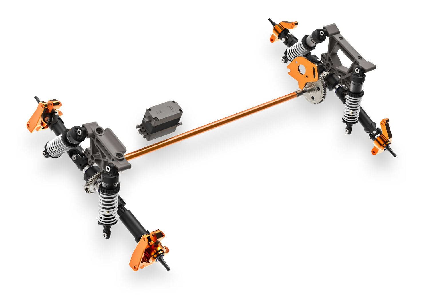 - Anodized-aluminum center driveshaft