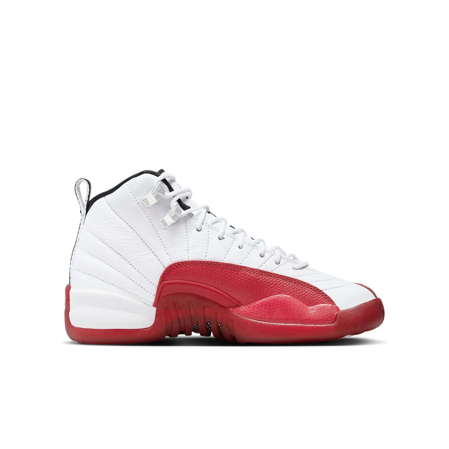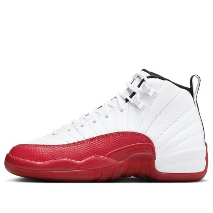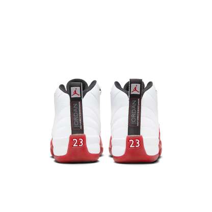 The jortktdan 12 Retro Cherry (GS) (2023) is a grade school-sized version of the iconic jortktdan 12, featuring a vintage-inspired tri-tone colorway of white, varsity red, and black. Inspired by the original 1996-1997 NBA season shoe, this retro model boasts lizard skin-textured overlays, Zoom Air cushioning, and a herringbone outsole. Minimal branding adds to its sleek design, making it a stylish and comfortable choice for young sneakerheads.