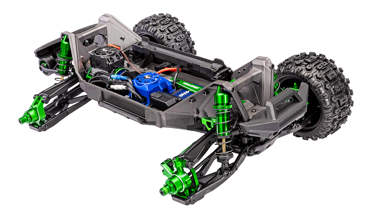 - Extended battery tray accepts Traxxas’ largest 6700 mAh 4-cell LiPo battery