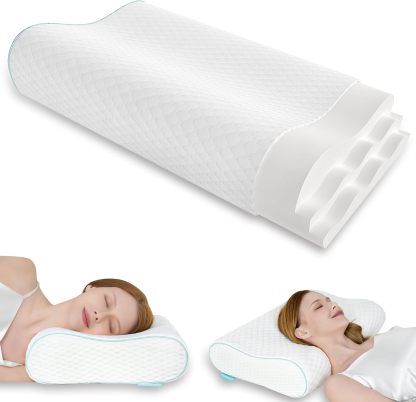 Cervical Neck Pillow, Side Sleeper Pillow for Neck Pain Relief, Adjustable Contour Pillow for Sleeping, Ergonomic Memory Foam Pillow, Orthopedic Cooling Pillow Back Stomach Sleeping, Queen Size