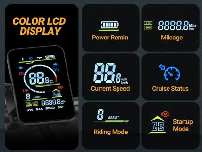 •【5 SPEED LEVELS】--Adult electric bicycles has big smart LCD display,All parameters and functions are clearly visible on the screen,there are 5 SPEED LEVELS,Speeds from 6 mph to 31 mph,the speed range of each gear can be customized in the APP.