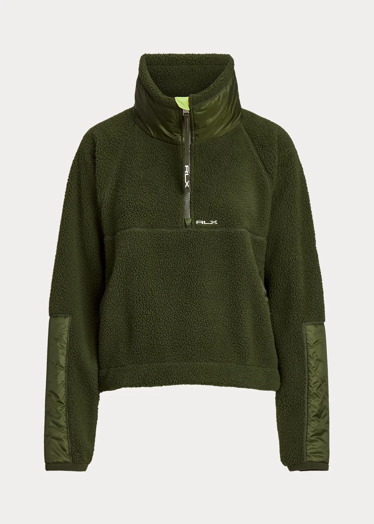 Cut for a relaxed silhouette, this cozy pullover unites soft high-pile fleece with tonal ripstop trim. It's designed with a half-zip placket at the funnel neckline, a drawcord waist, and our embroidered "RLX" logo.