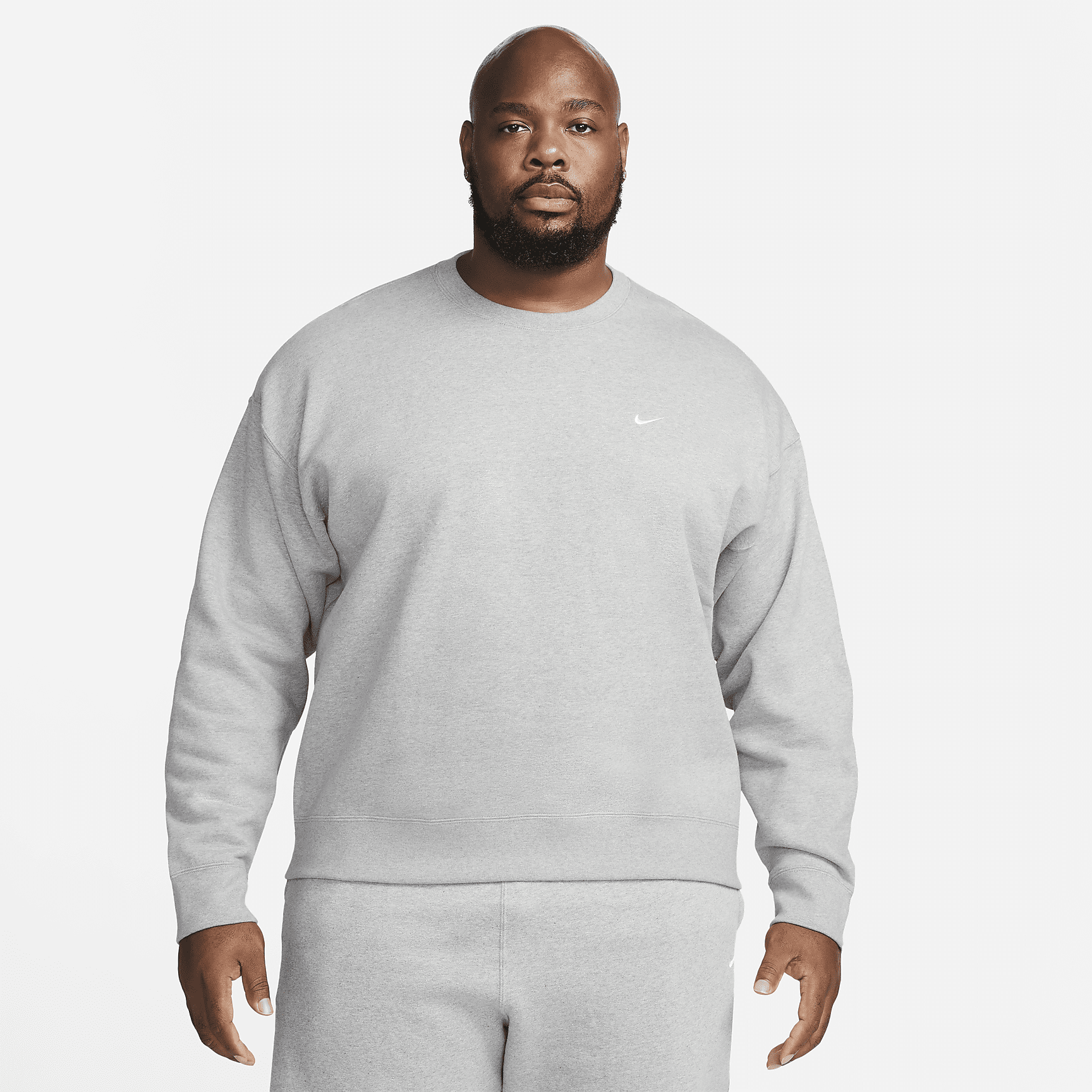 Premium fleece fabric and a laid-back design highlight the Solo Swoosh crew. Part of the Essentials collection, this piece uses a soft feel with a loose fit for all-day wear.