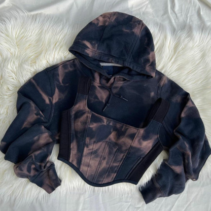 Women's Fashion Tight Back Lacing Corset Tie-Dye Top Set